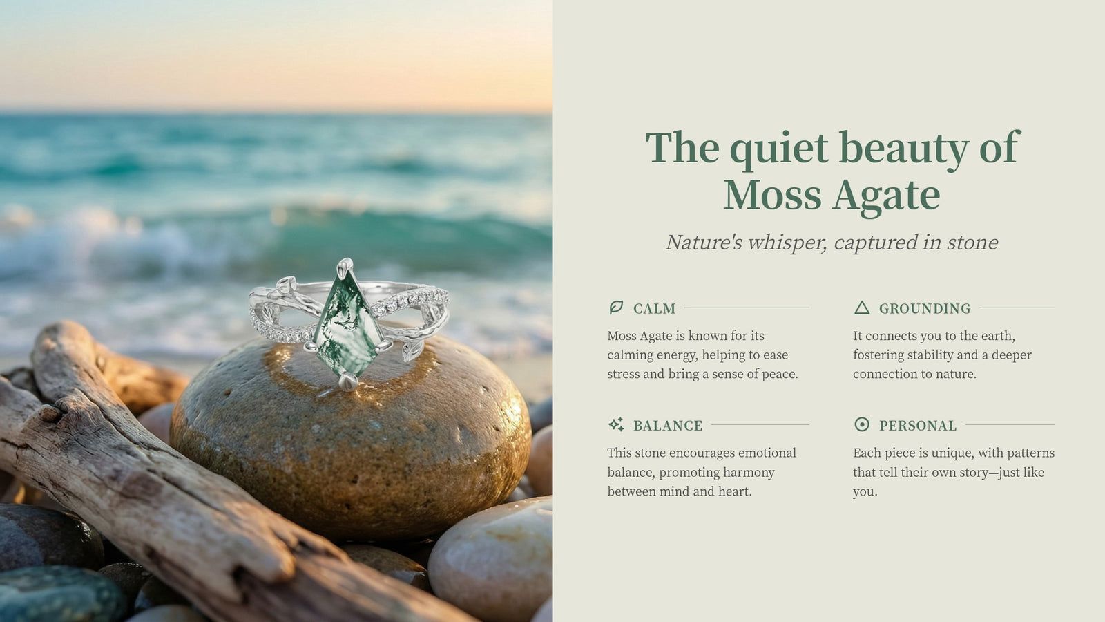 Calm, grounded pieces inspired by forests and quiet strength.