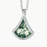 At its heart lies a genuine moss agate—nature’s own artwork, formed over millennia beneath forest floors and mountain streams. No two stones are alike; yours is a one-of-a-kind talisman of calm, balance, and quiet feminine strength.