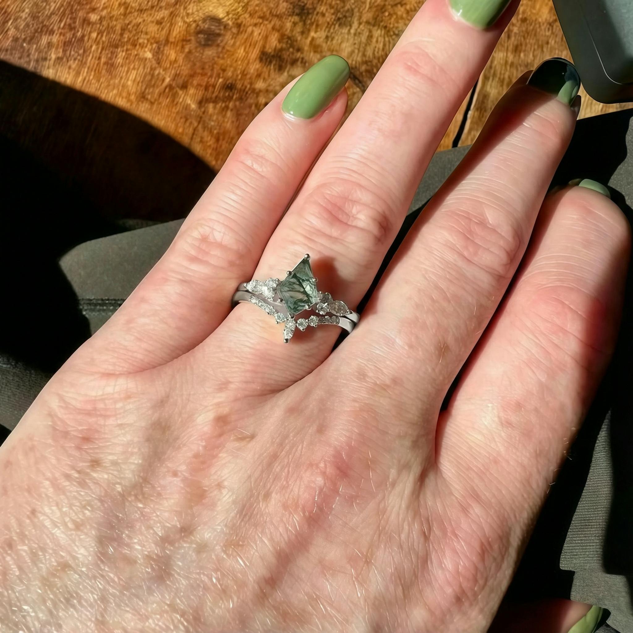 Each Moss Band Ring cradles a slice of Earth’s quiet magic—natural moss agate, formed over millennia. No two stones are alike; yours is a one of a kind talisman of calm, balance, and gentle feminine strength.
